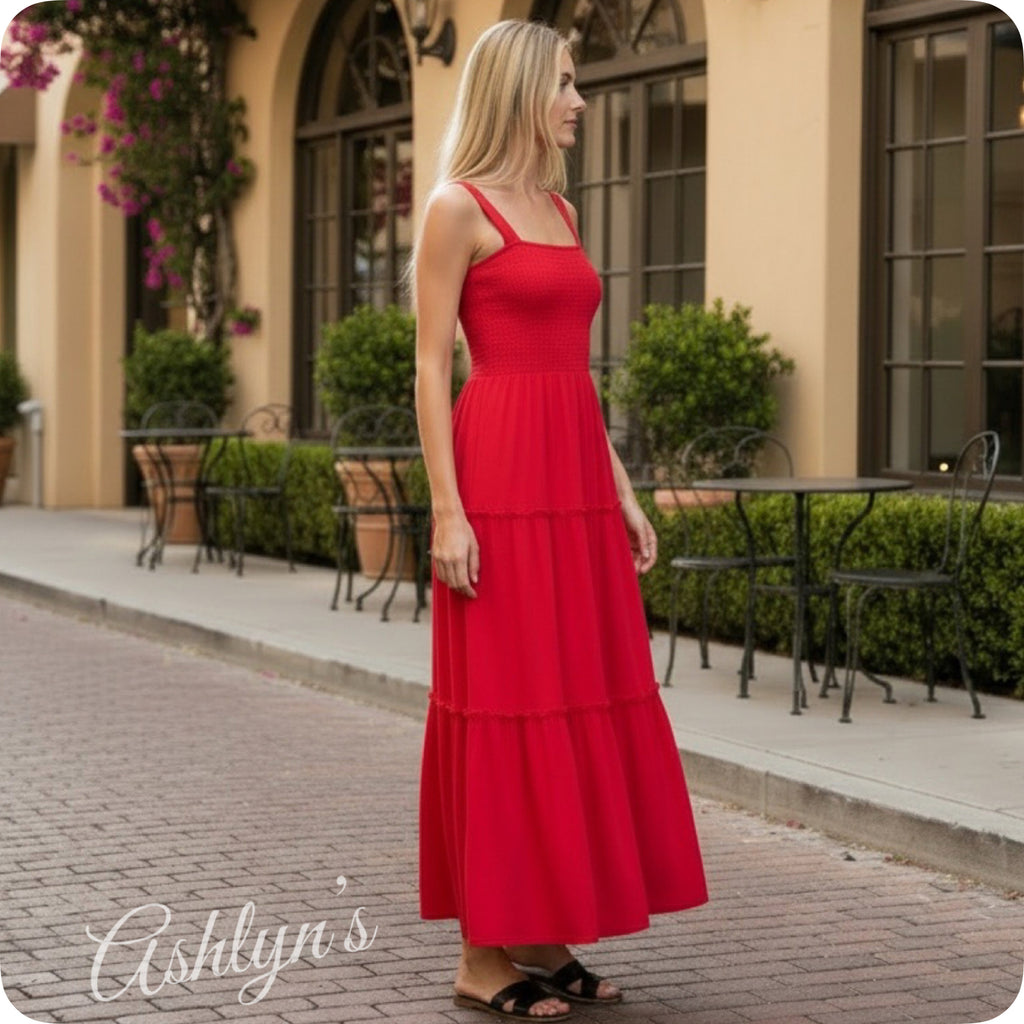 Adorable Me-Zenana Ruby Red Smocked Midi Dress