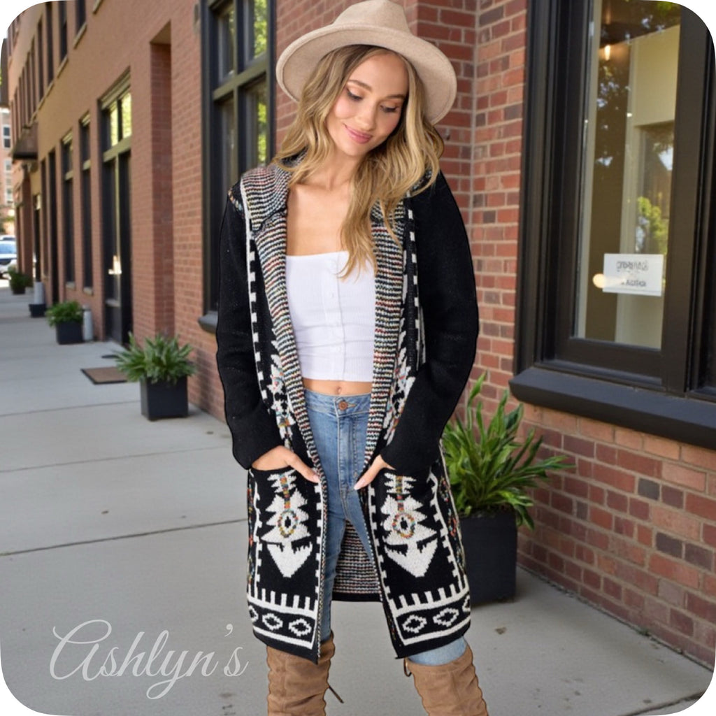 Oh Yes you’re going to absolutely love our Boho asymmetric print black with rainbow Multicolor combo, hooded sweater cardigan with side pockets! It’s so cozy so soft and definitely will become your new favorite. *About the Fit: relaxed, cozy and true to size
