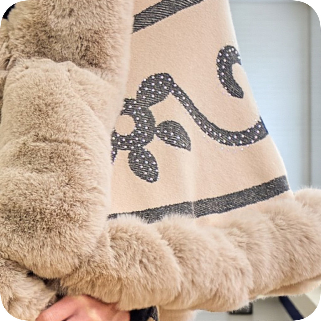 There’s absolutely no question you’ll fall in love with our classy faux fur trim with chain detail print, rhinestone accented layered cape coat. so unbelievably soft and warm be ready for the snuggle factor! *About the Fit: one size fits Small through 2XL beautifully!