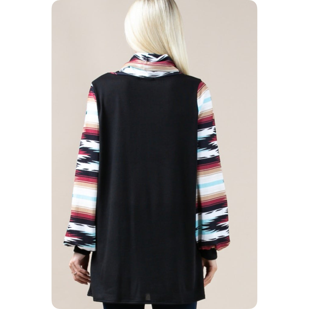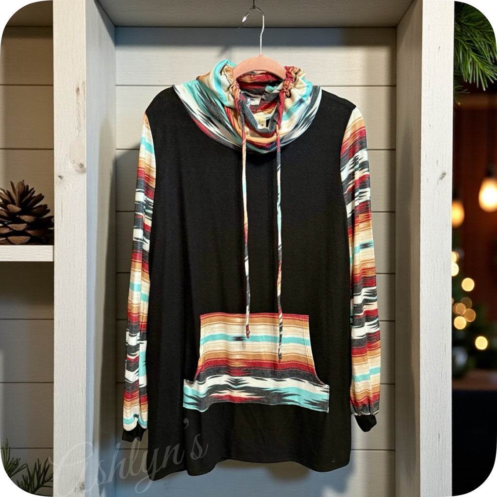 *Features: Aztec print adjustable string cowl neckline, sleeves and kangaroo pocket