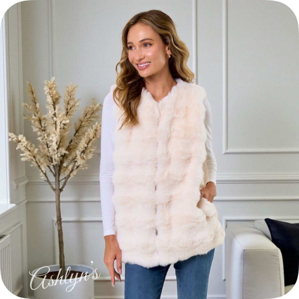 / Cozy Quilted Plush Faux Fur Puffy Ivory Vest-Jacket