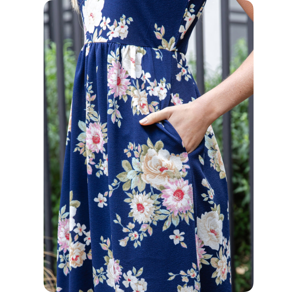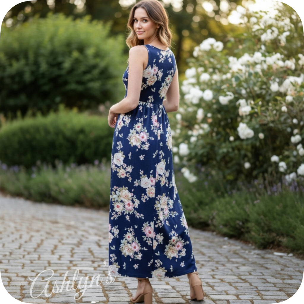 You’ll absolutely love our Stepping into Spring Navy Floral Sleeveless Maxi Dress with hidden side pockets! Crazy super soft and extremely complementing.